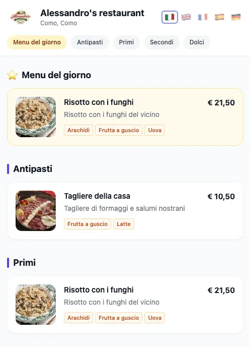 Crea il menu digitale del tuo locale e condividilo con i clienti tramite QR code. Il menu può essere aggiornato in pochi secondi.